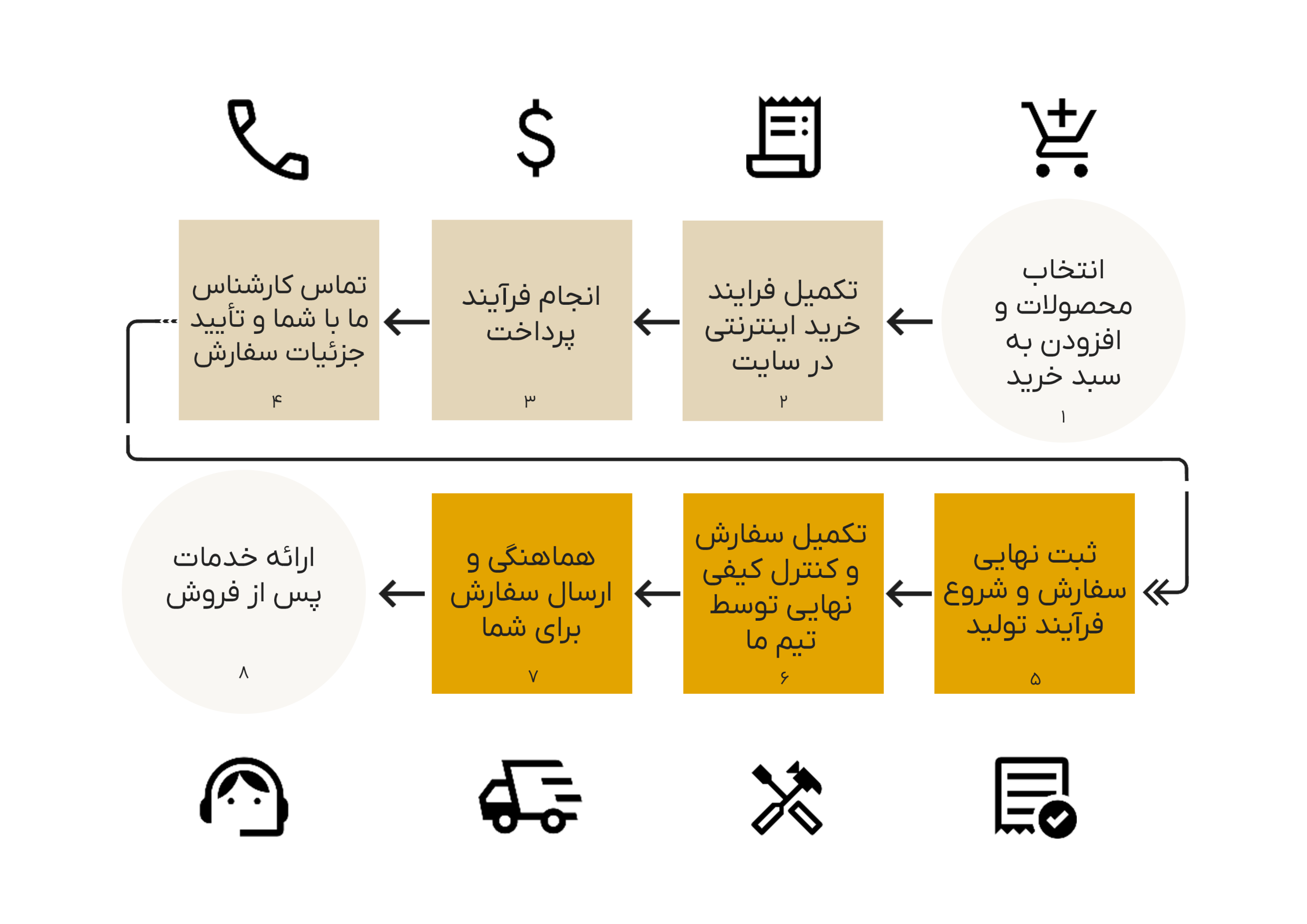 از آنجا که محصولات بهصورت سفارشی و مخصوص شما ساخته میشوند، پس از شروع تولید امکان لغو سفارش وجود ندارد.